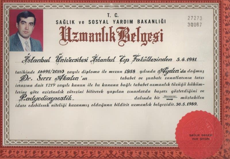 Uzmanlık diplomamı GATA HAydarpaşa Eğitim Hastanesinde 1985-1990 daki çalışmamla aldım